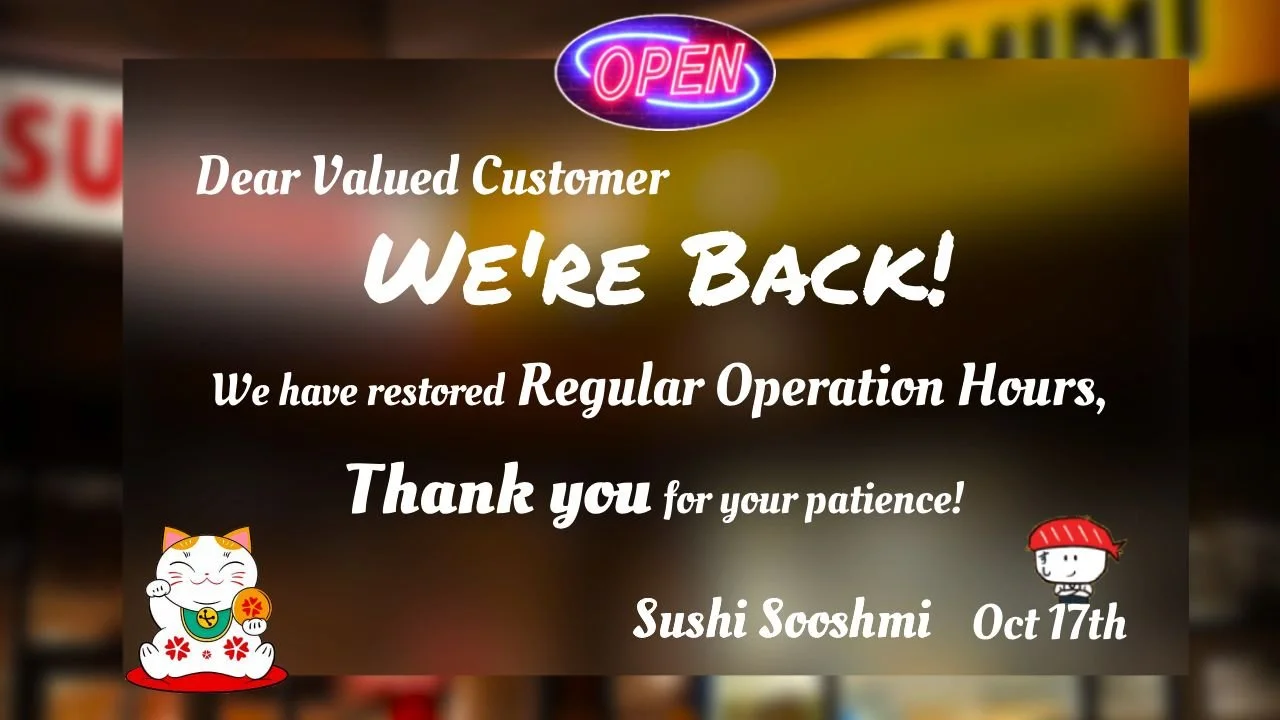 Sushi Sooshimi , started with a vision of providing a family friendly and fun environment where you can enjoy the best sushi available in Mississauga at affordable prices with your friends and family . With uncompromising standards of excellence and our unchanging motto , “ Serving with Passion ” , we hope to build a solid community of loyal and wonderful customers who will support us in our goals . We embark on this wonderful journey with a professional sushi chef having over 10 years of experience .